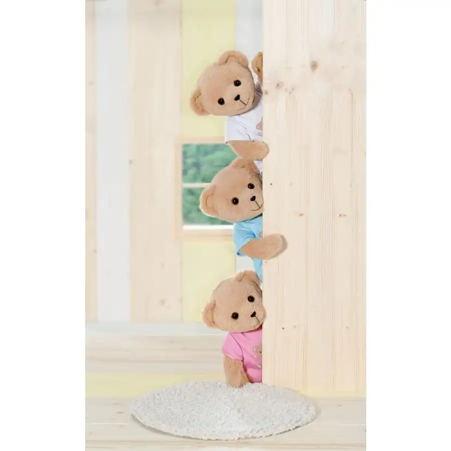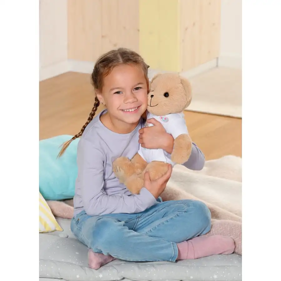 Den lilla nallen med det söta leendet har en mjuk, uppstoppad kropp. Den grundläggande utrustningen består av en vit romper-dräkt. Nallen har sin egen modekollektion och sina egna tillbehör, men kan också passa och bära nästan alla BABY born-kläder och tillbehör. Dess figur är formad för att passa alla 43 cm BABY born-plagg. Det är bara skorna som inte passar. Men vilken nalle bär skor? Nallen har rörliga armar och ben och ett svängbart huvud, vilket gör det lätt att klä av och på sig. Dess rörlighet är perfekt för många olika typer av (roll)spel. Jag undrar vem som kommer att vara den första att få ta del av vänskapsboken med extra klistermärken? Från 24 månader.