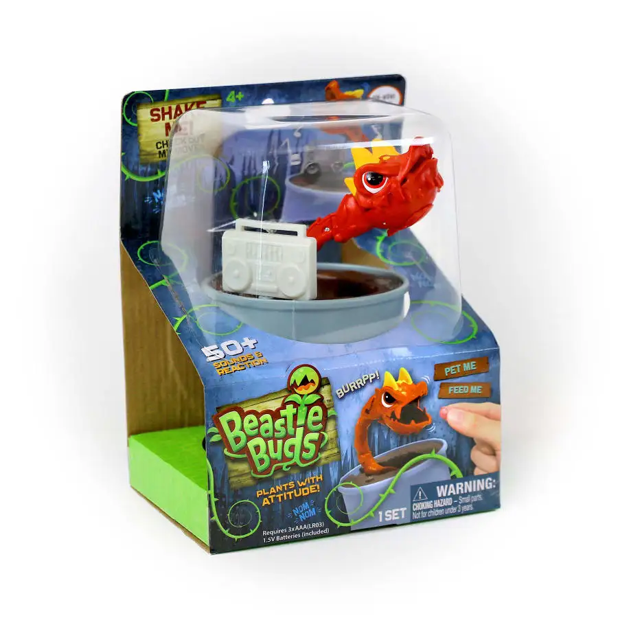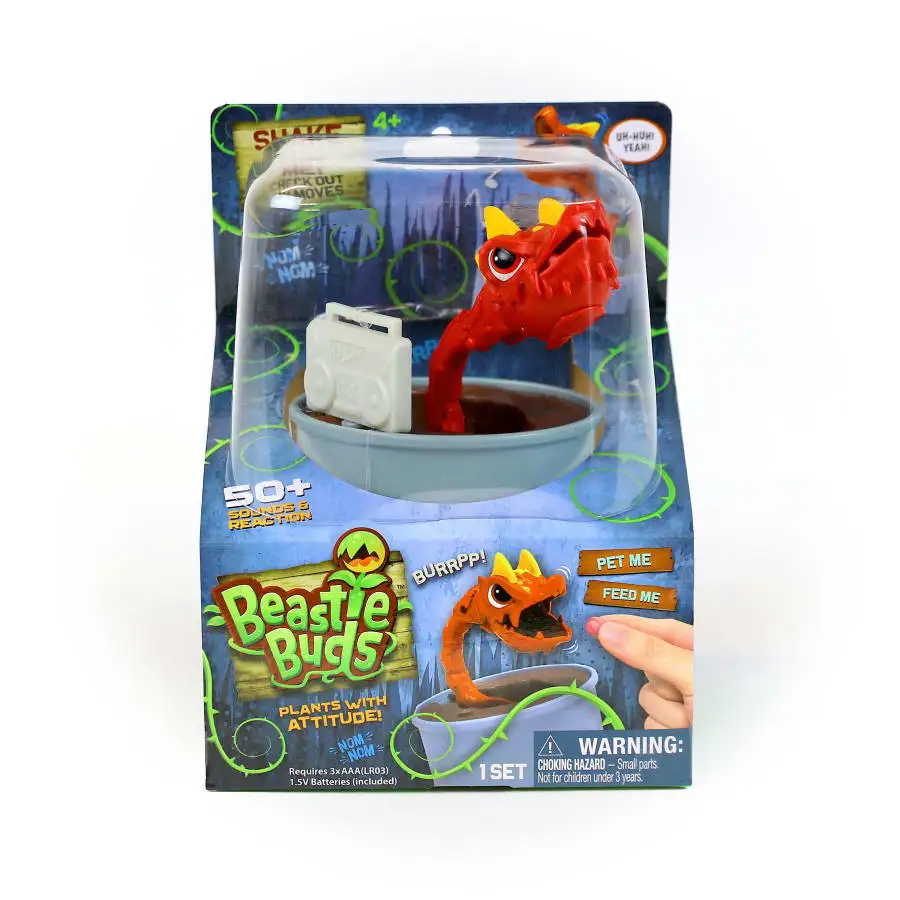 Beastie Bud är en häftig köttätande växt som är full av teknik och attityd. Den har flera beröringssensorer och över 50 olika reaktioner och fraser. Den kan till och med dansa! Undvik att irritera växten – den kan attackera! Batterier 3xAAA ingår. 5+