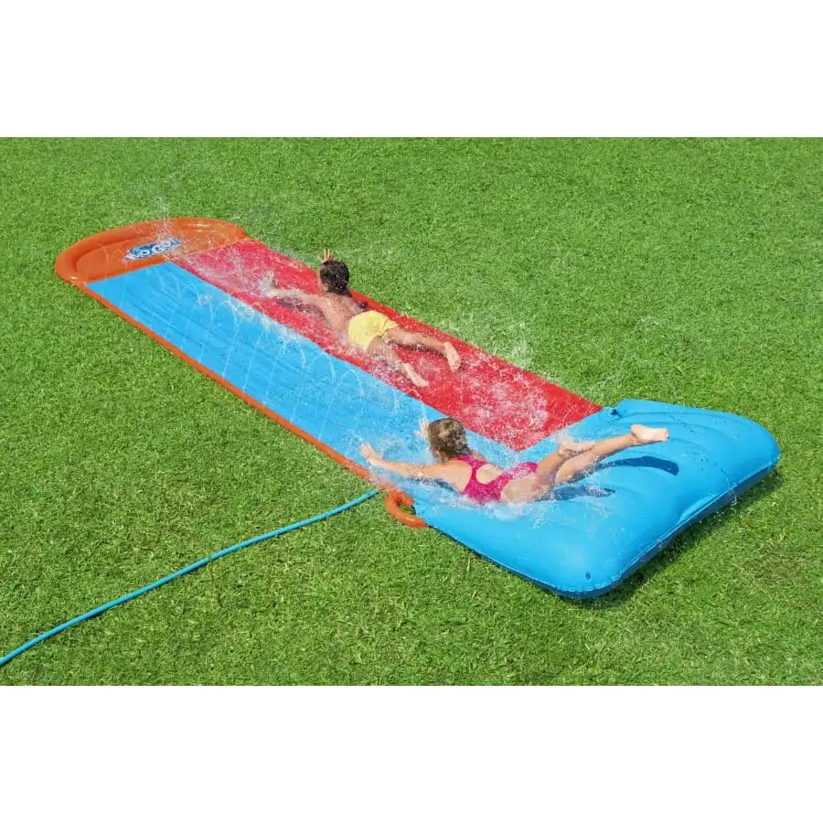 ● The landing pads of the Tsunami Splash Ramp slide are soft. The ramps create waves and a fun splash when you land on it!