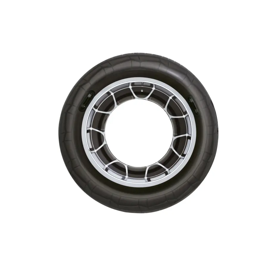 The High Velocity tire, which resembles a car tire, has a diameter of 119 cm. The tire has sturdy handles for holding. The package includes a patch sticker. Age recommendation for over 12 years old.