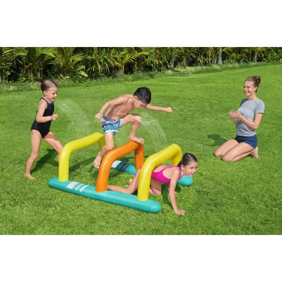 ● Hyppää tai ryömi tämän hauskan vesisuihkuttimen läpi