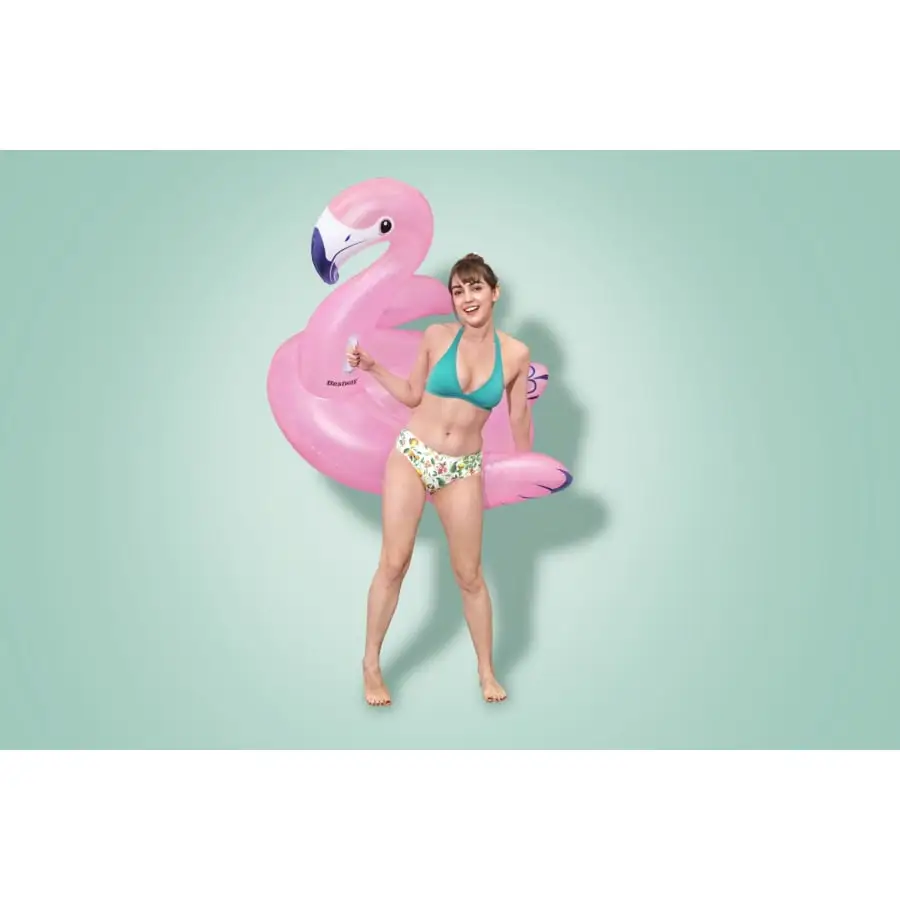 The Bestway® Luxury Flamingo is an inflatable ride-on with personality and pizzazz. This awesome ride-on has a huge surface area for sitting, lounging and posing. The long elegant flamingo neck is complete with firm heavy duty handles for gripping as you wade through the water or carry this fancy bird across the warm sand. Take this elegant bird in the water and enjoy being the center of attention. This ride-on is constructed to be buoyant and beautiful as it floats under the sun. It inflates and deflates with ease, making storage easier than ever. The purple glitter printed highlights on this flamingo round out the appealing features of this perfectly pink float. Let this pool accessory set the stage for every party and family gathering. This flamingo ride-on is festive, fashionable and fun! Allow the Bestway Luxury Flamingo to ignite your summer and fill your days with leisure and fun!