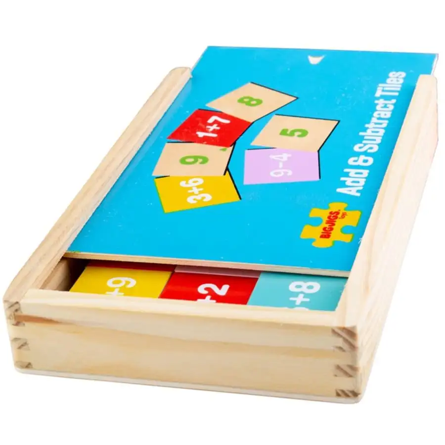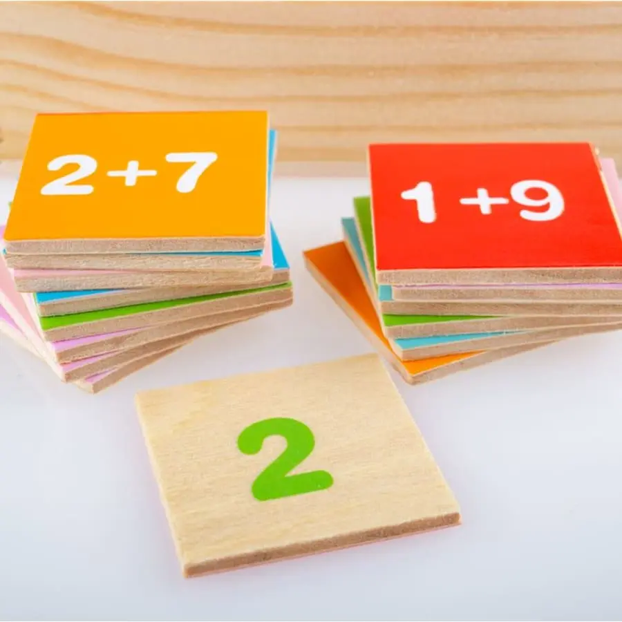 Addition och subtraktion med siffrorna 1-9. Ljusa färger i bitar och en praktisk förvaringslåda. Hjälper till att utveckla matematiska färdigheter, skicklighet och koncentration.