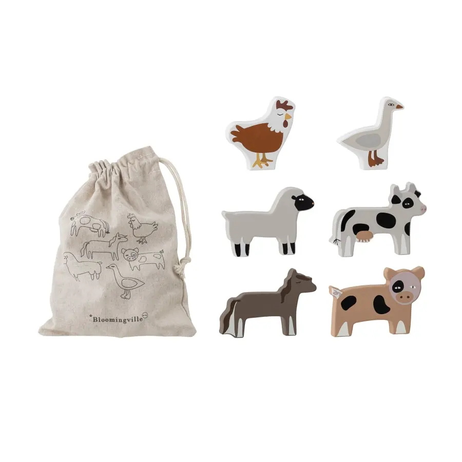 Karlo is a series of six farm animals. They are made of MDF and the tones are naturally soft. The lives are packed in a resealable cotton bag. Age recommendation over 18 months