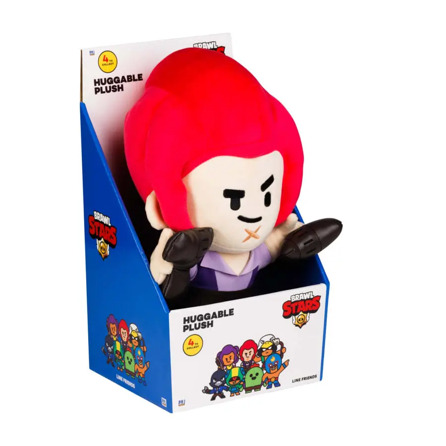 Discover the soft side of Brawl Stars! Jump out of your favorite online game for a while to feel the softness of an IRL huggable Brawl Stars plush. There are 4 different for you to collect. The huggable plush is 30 cm tall.