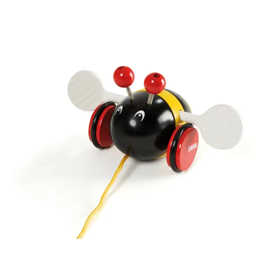 This bumblebee is the kind and gentle type. Pull it along to the sound of a buzzing hum. A pull-along friend who will do anything to keep up with your pace, the faster you go, the faster the wings spin.