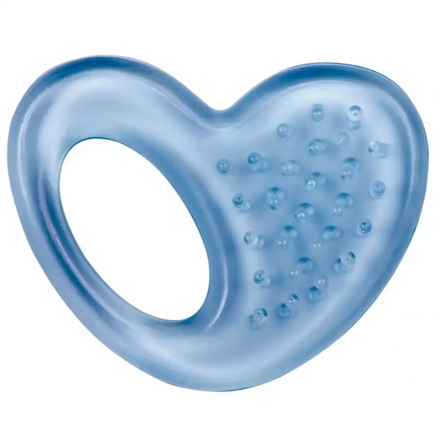 A fun monochromatic, sterilized water-filled chew figure with a heart pattern (blue, pink and yellow) brings relief to your baby’s itchy gums. The cooling chew figure is recommended for the little ones. Eases gum sensitivity for children during teething.
