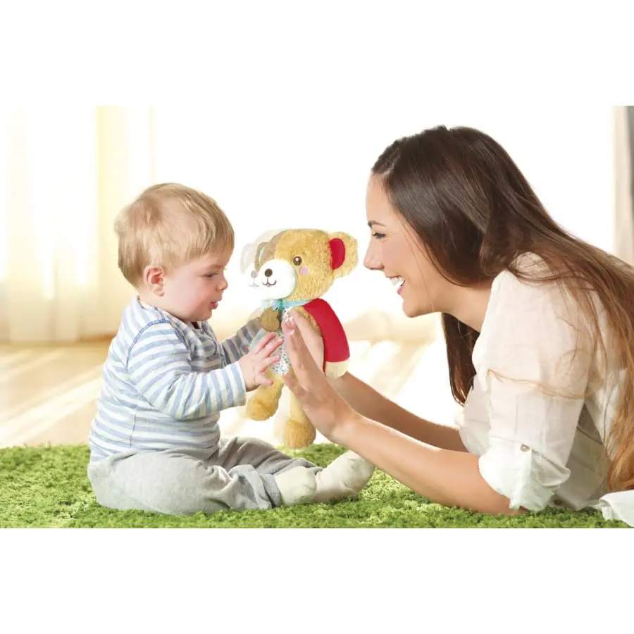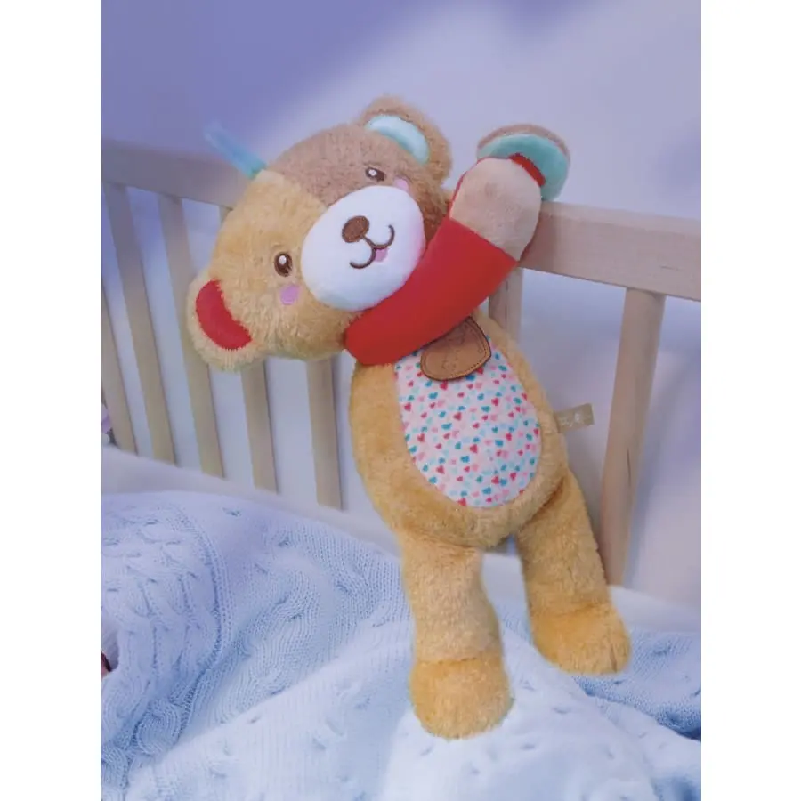 De olika materialen, färgerna och avtagbara leksakerna i den roliga mönstrade trädoften uppmuntrar barnet att utforska och leka. Fågeln (batterier 3 x LR44) spelar ljuv musik och leksakernas roliga ljud glädjer barnet.