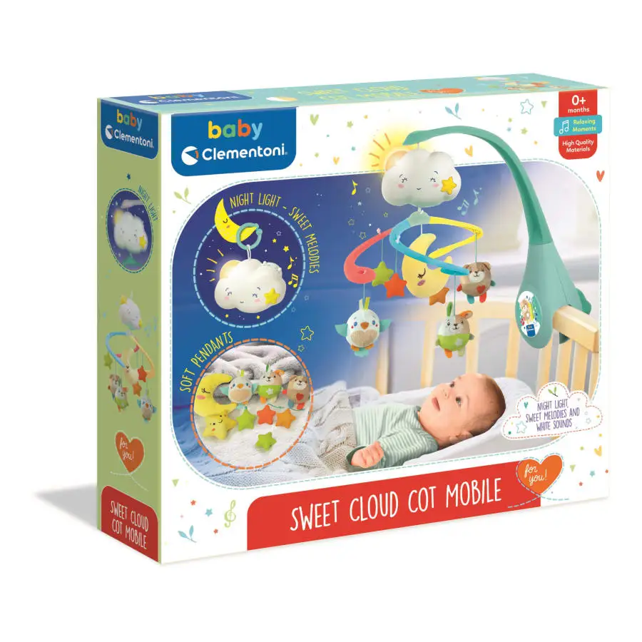 The movements, the suffused light effects, the sweet melodies and the sounds of nature create a calm and serene atmosphere to accompany the child into the land of dreams. Timer with three options. 0 months+