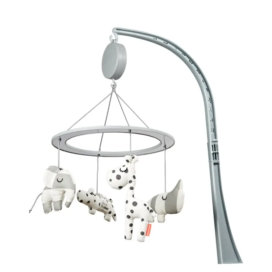 With its soft monchrome design the cute mobile will trigger your baby’s curiosity. Deer friends Croco, Elphee, Raffi and Nozo will gently stimulate baby’s senses and support early development with contrasting dots and stripes.