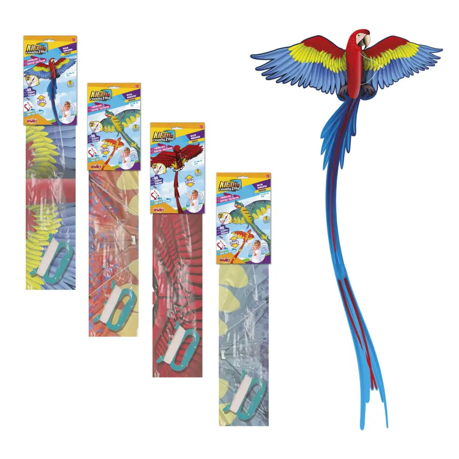 Fly the vibrant-coloured bird kite in the sky. The kite has a wingspan of 104 cm and ready to fly in a blink of an eye. Many to choose from. 5+