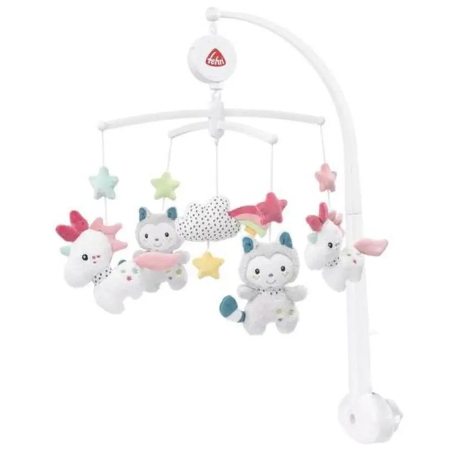 Fehn Musical Mobile Aiko & Yuki – Wind-up mobile with musical lullaby and sweet figures for calming – easy attachable at the crib for babies from 0-5 months. Size 40 cm.Washable at 30°C.