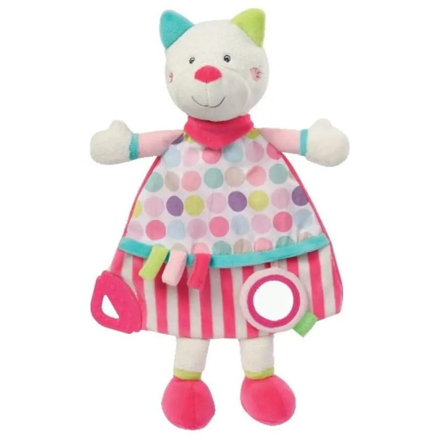 Fehn Stripes & Dots Comforter Cat with rattle, teether and mirror. For babies and toddlers 0+ months up. Size: 32 cm.