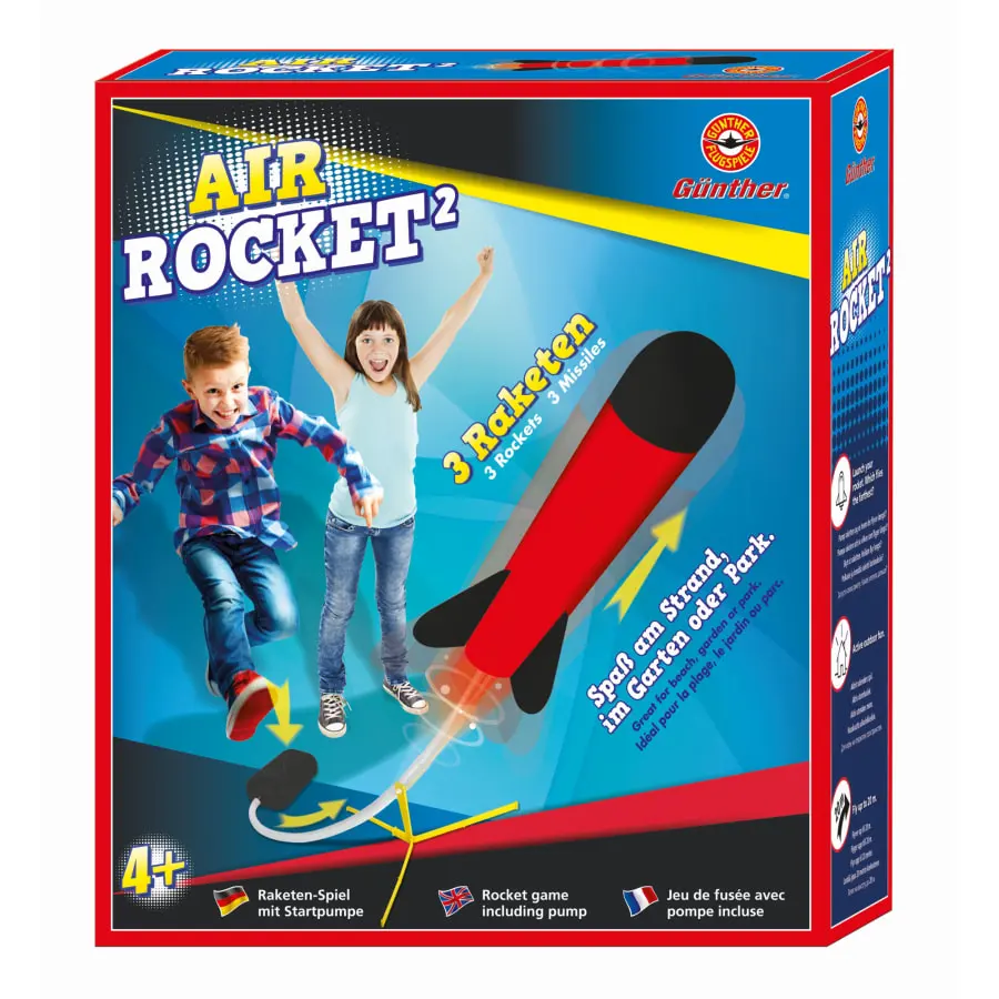 Sätt ihop, stampa, flyg! Skjut upp raketen med ett fast tramp. Raketen kan flyga upp till 20 m bort.