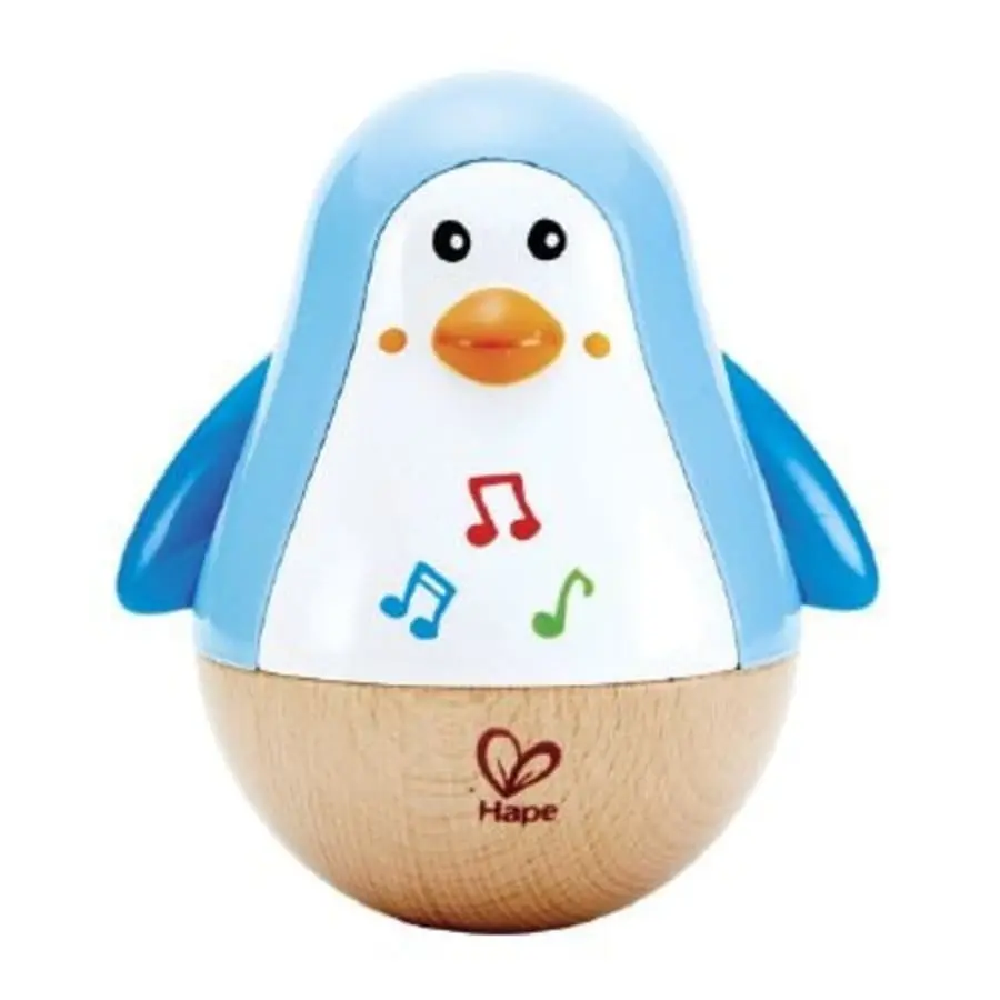 Träpingvinen gläder barnet med sin vackra röst. När pingvinen vaggar gör den ett mjukt ljud. De små vingarna är rörliga. Produktstorlek: 11x9x13 cm. Paketstorlek: 16x10x18 cm. Rekommenderad ålder: 6 månader+.