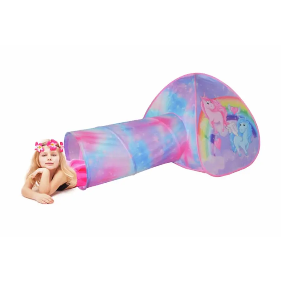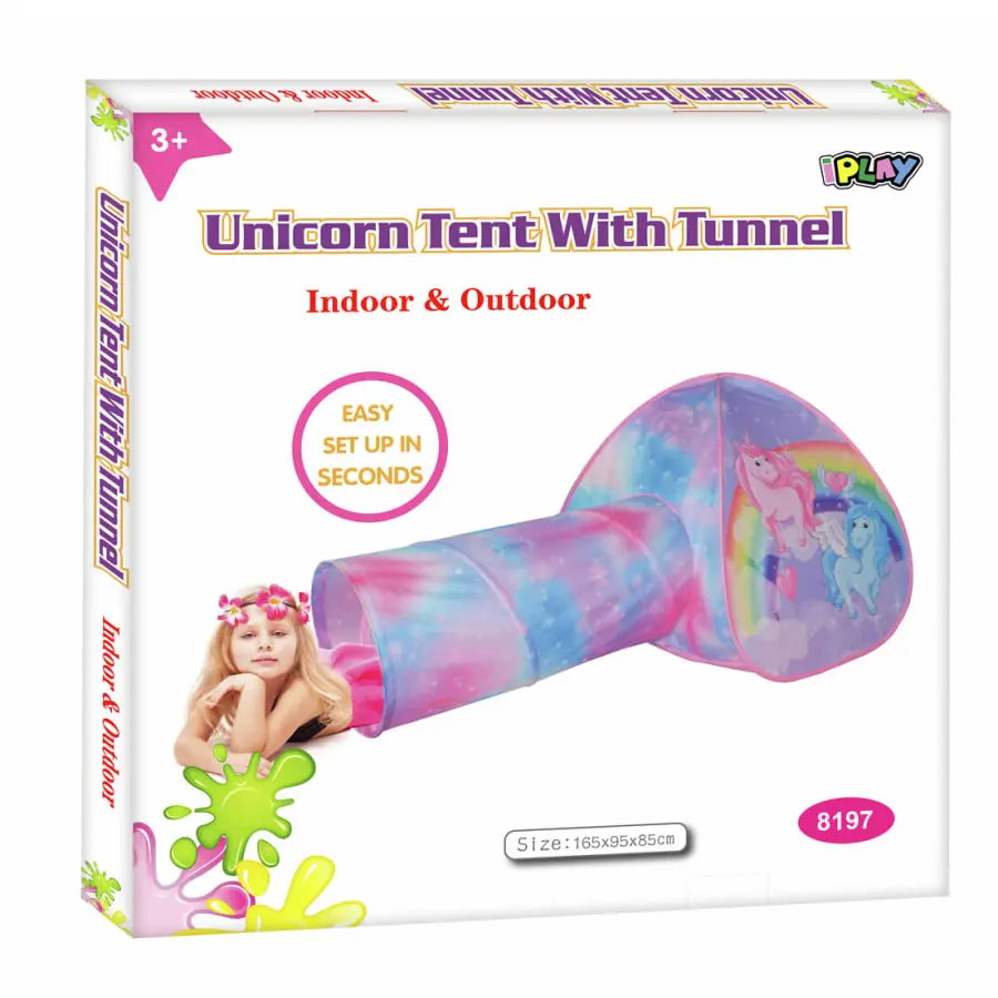 Easy to open play tent. The tunnel part is loose and can also be used separately. Size 165x95x85 cm. Polyester. Age recommendation: 3+.