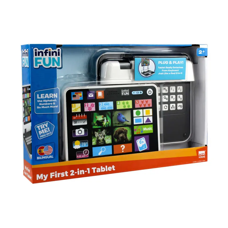 Med Infinifun My First 2-i-1-datorn kan ditt barn upptäcka djur, former, färger och mer. Det utvecklar finmotorik, nyfikenhet och fantasi. Med den lär sig barnet t.ex. bokstäver, ord och former och djur och färger.