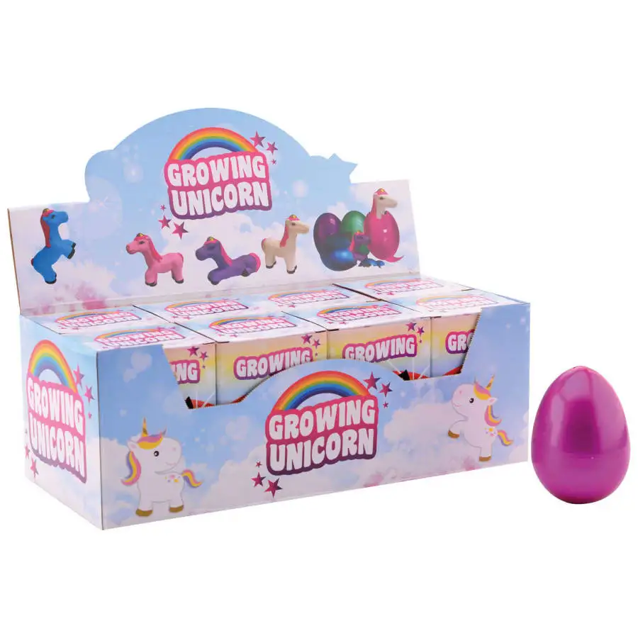 Lägg ägget i en skål med vatten och vänta tills det kläcks! Detta megastora ägg kläcks till en sagolik enhörning. Kläckning sker gradvis, om cirka en dag. Åldersrekommendation 4+ år. (Obs: Du kan tyvärr inte välja färg vid beställning från webbutiken. Vi levererar en slumpmässig färg beroende på lagersituation. Paketet innehåller en produkt.)