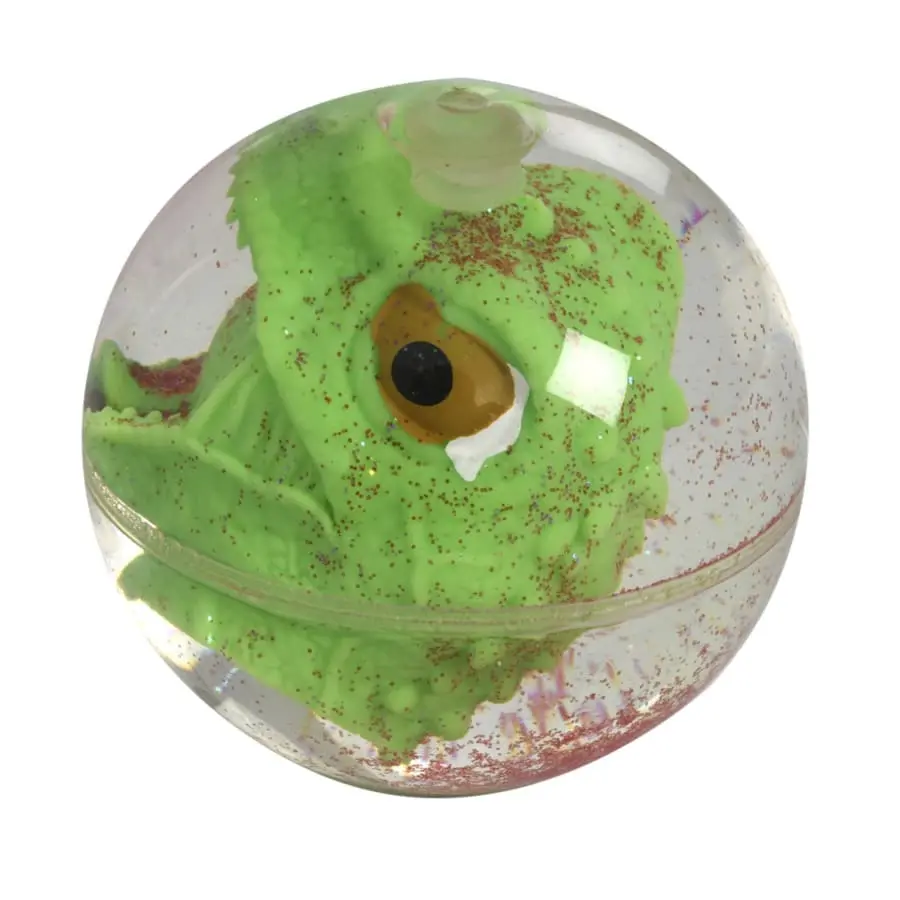 Denna studsboll innehåller en dinosaurie. Kasta och studsa bollen för att få den att blinka. Diameter: 6,5 cm. Innehåller 3 x LR41-batterier, som inte går att byta ut. 3+