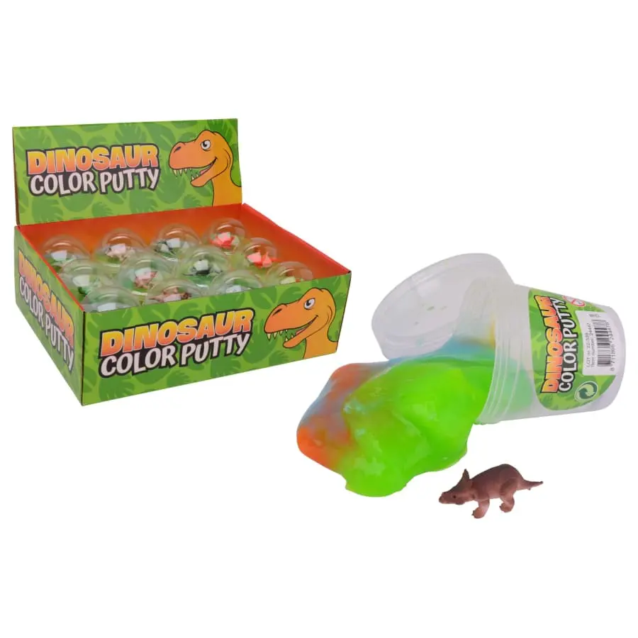 Nicely colorful rainbow putty, with a dinosaur character! You can stretch and squish the putty and hide the figure in a cup among the putty. Age recommendation 3+ years.