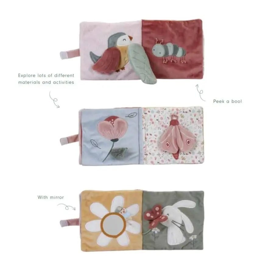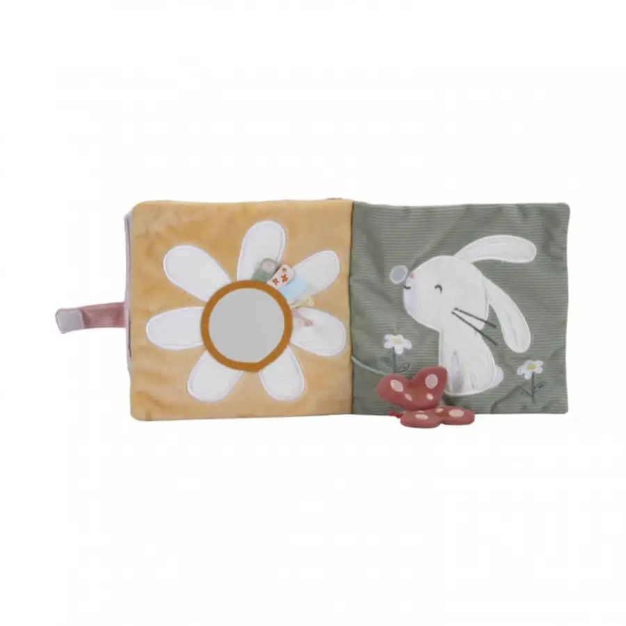 Fåglar, kaniner och fjärilar har äventyr i den söta mjuka boken. Det knastrar och skramlar genom hela boken. 4 sidor mjuk introduktion till blommornas och fjärilarnas värld.