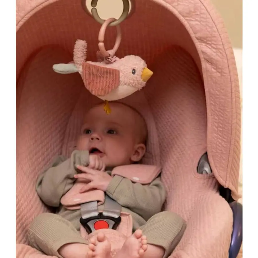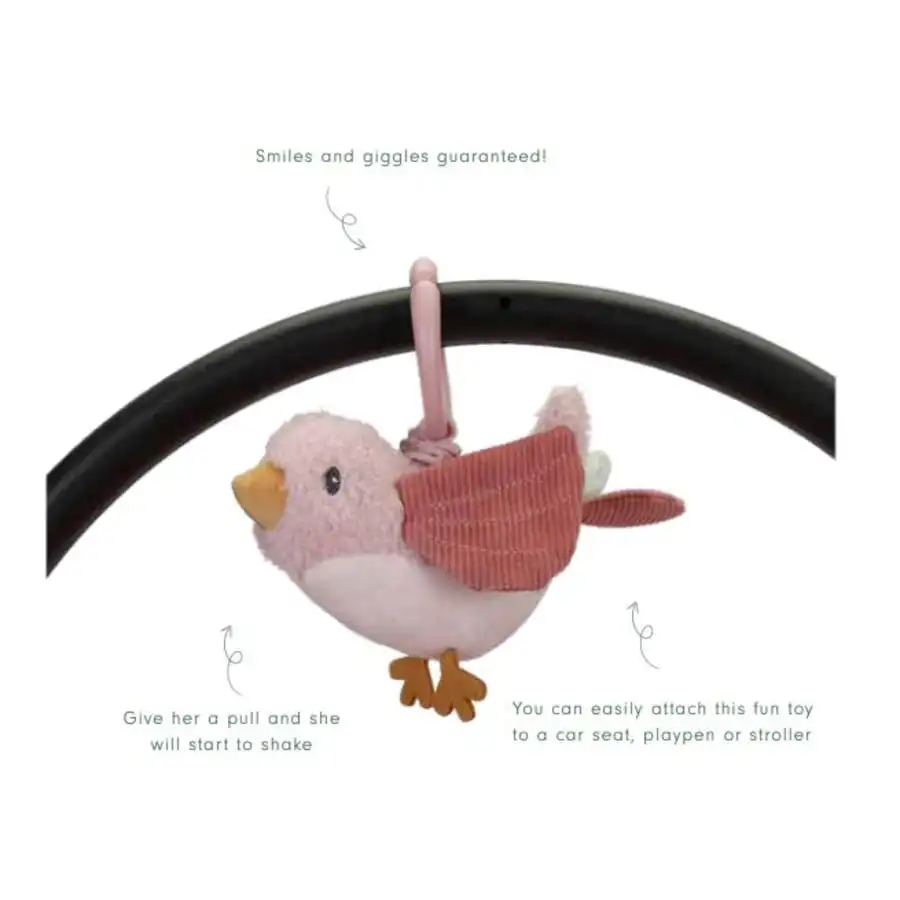 Söt fågel ”Pull-and-shake” vibrerande leksak med hängögla.