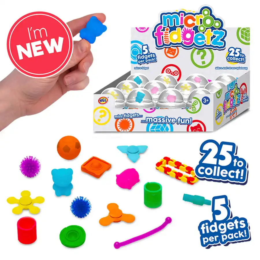 Collect 25 different fun microfidgets. 5 microfidgets in each surprise package. One visible, the other four blind bagged for a surprise! Each of the items included is a popular micro version of bestsellers in their own right.