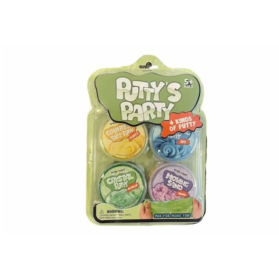 The package contains four different kinds of play paste. You can mix the different play pastes together or play with them as they are. Pastes: crystal paste, magic sand, bounce paste and silk paste. Age recommendation 3+ years.
