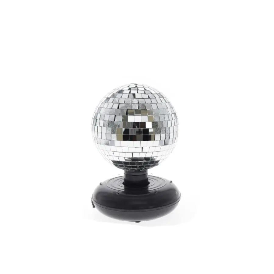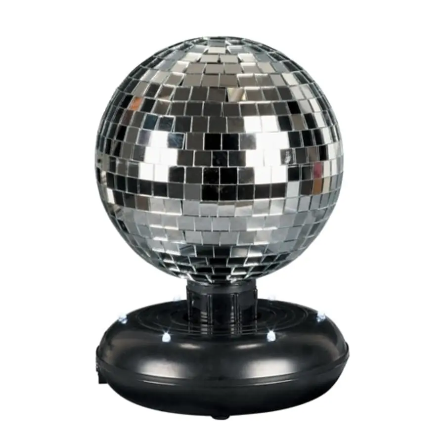 Ska det vara disco, så låt det vara disco! Klassisk discokula på fot, med 6 LED-lampor som lyser på spegelkulan. Adapter medföljer. Från 3 år (kräver inte batterier).