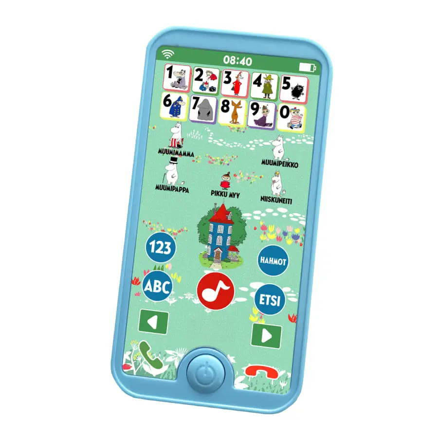 Mumin-smarttelefonen lär barnet siffor och bokstäver på ett roligt och inspirerande sätt. Barnet kan även ”ringa” Mumin karaktärerna och lyssna på musik! Telefonen används som en riktig smartphone. Batterier ingår. 3+