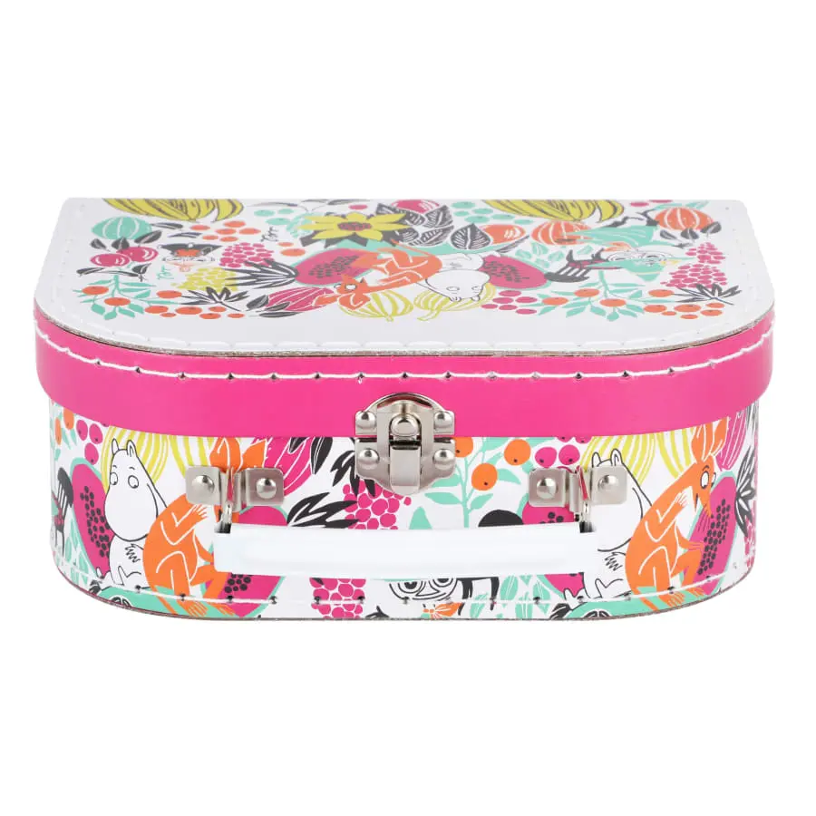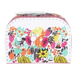A fun and colourful little paper case for storing toys and of course for travel. The case has a lively design of a few Moomin characters surrounded by various flowers and fruit.