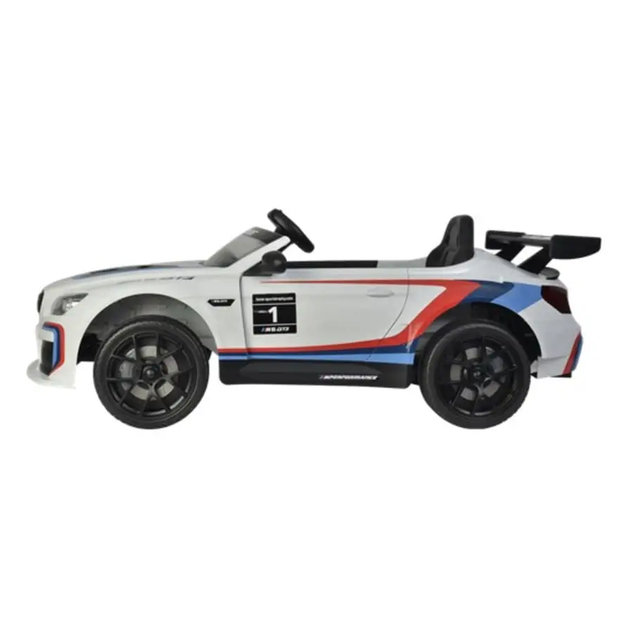 Barnet kommer lätt att känna sig som en racinghjälte i denna fantastiska BMW M6 GT3 elbil, som tillverkas på licens från fabriken och som i många avseenden nära följer den vinnande bilmodellen som är känd från de europeiska GT-tävlingarna. Bilen kan köras självständigt eller alternativt kan föräldrar ta kontroll över bilen med en fjärrkontroll. Bilen är vit och har fina svarta och röda detaljer och effekter i olika blå nyanser. Det hela kröns av en snygg bakspoiler. Fordonet är utrustat med däck med mjuk slitbana av EVA-material, vilket ger en bättre, greppvänligare och tystare körupplevelse. Det är lätt att komma in i bilen, eftersom båda dörrarna kan öppnas. Denna modell har även en lädersäte som en specialfunktion. I utrustningslistan finns även: snygga LED-lampor fram, en rallyratt, knappar för musikfunktioner på ratten och inbyggda Bluetooth-anslutningar.