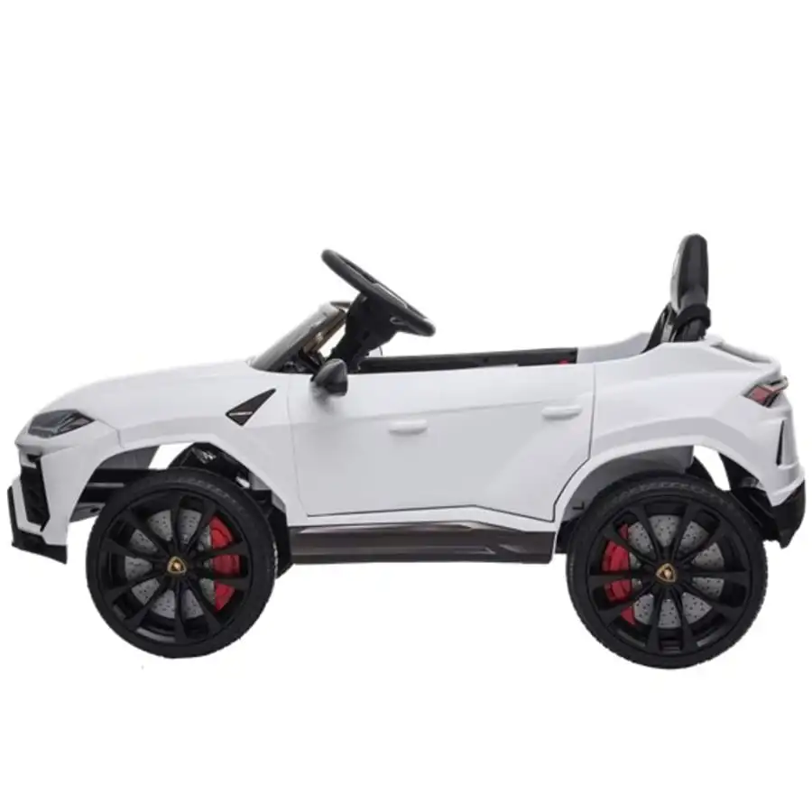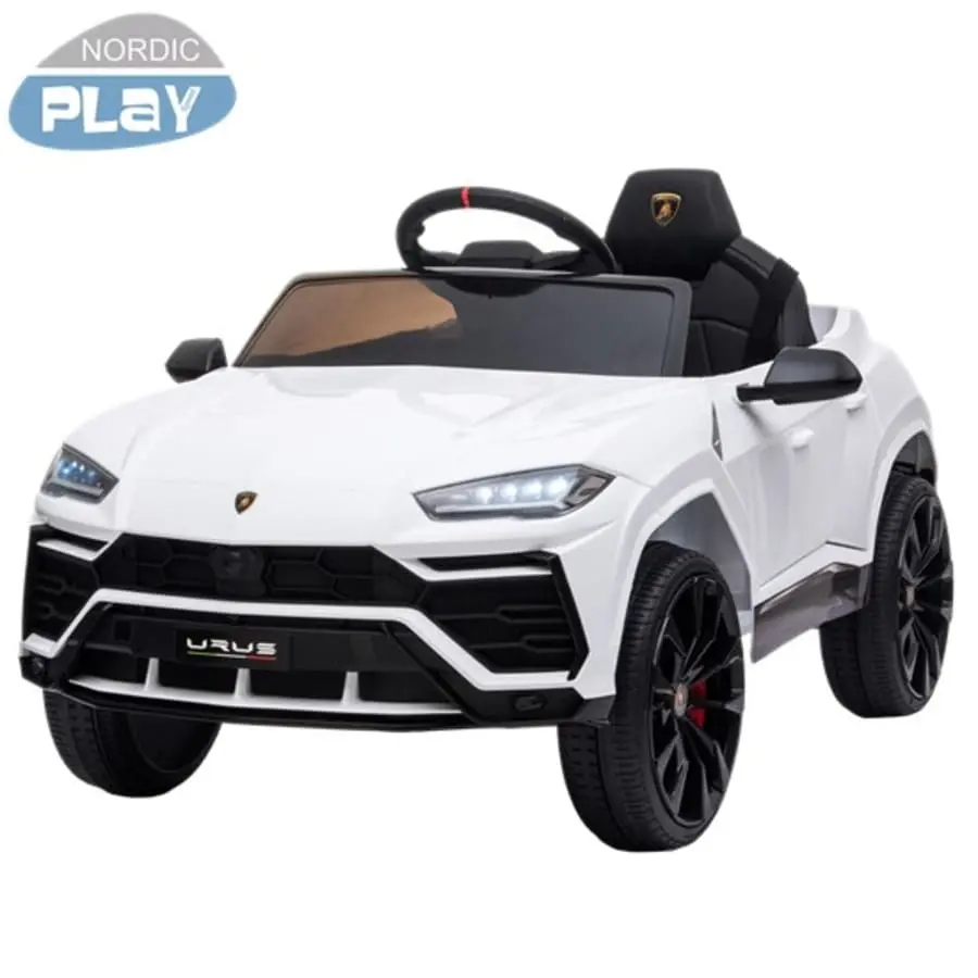 Lamborghini Urus är en italiensk, kraftfull godbit i SUV-klassen, och detsamma gäller denna elbil för barn. Bilen kan köras självständigt eller alternativt kan föräldrar ta kontroll över bilen med en fjärrkontroll. Denna Lamborghini är elegant vit till färgen. EVA mjuka däck absorberar stötar och detta ger en bättre, stabilare och tystare körupplevelse. Fälgarna har en stilren Lamborghini-design. Det är lätt att komma in i bilen, eftersom båda dörrarna kan öppnas. Till utrustningen hör även LED-strålkastare och en modern instrumentbräda.