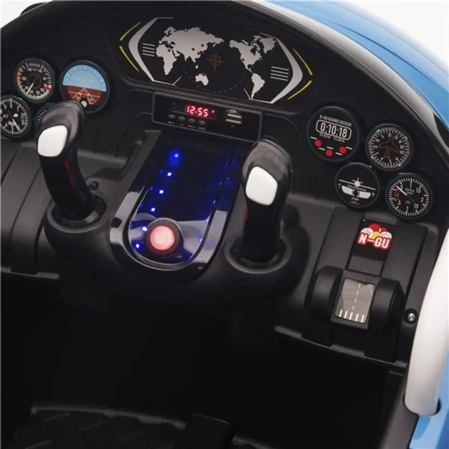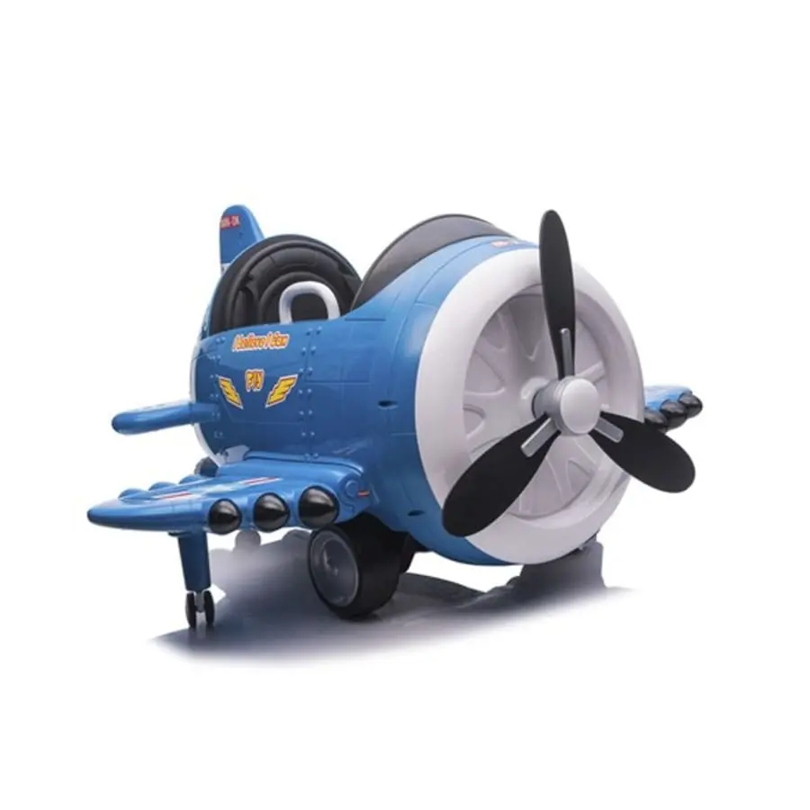 Koneessa on erittäin realistinen tuulilasi ja potkuri (asennettava). Potkuri pyörii koneen ajon aikana. Lentokonetta voi ohjata myös aikuinen mukana tulevalla kauko-ohjaimella. Lentokone on myös saatavana punaisen tai sinisen värisenä. Kojelaudassa on 8 LED-valoa ja erilaisia ääniä, kuten: käynnistys, konekivääriääni ja pommiääni. Sinusta tuntuu kuin olisit luotisateessa. Voit myös kuunnella musiikkia kytkemällä MP3 USB liittymään. Kun lapsesi on lopettanut ”lentämisen”, siivet voidaan taittaa helposti kasaan ja näin se vie vain vähän säilytystilaa.