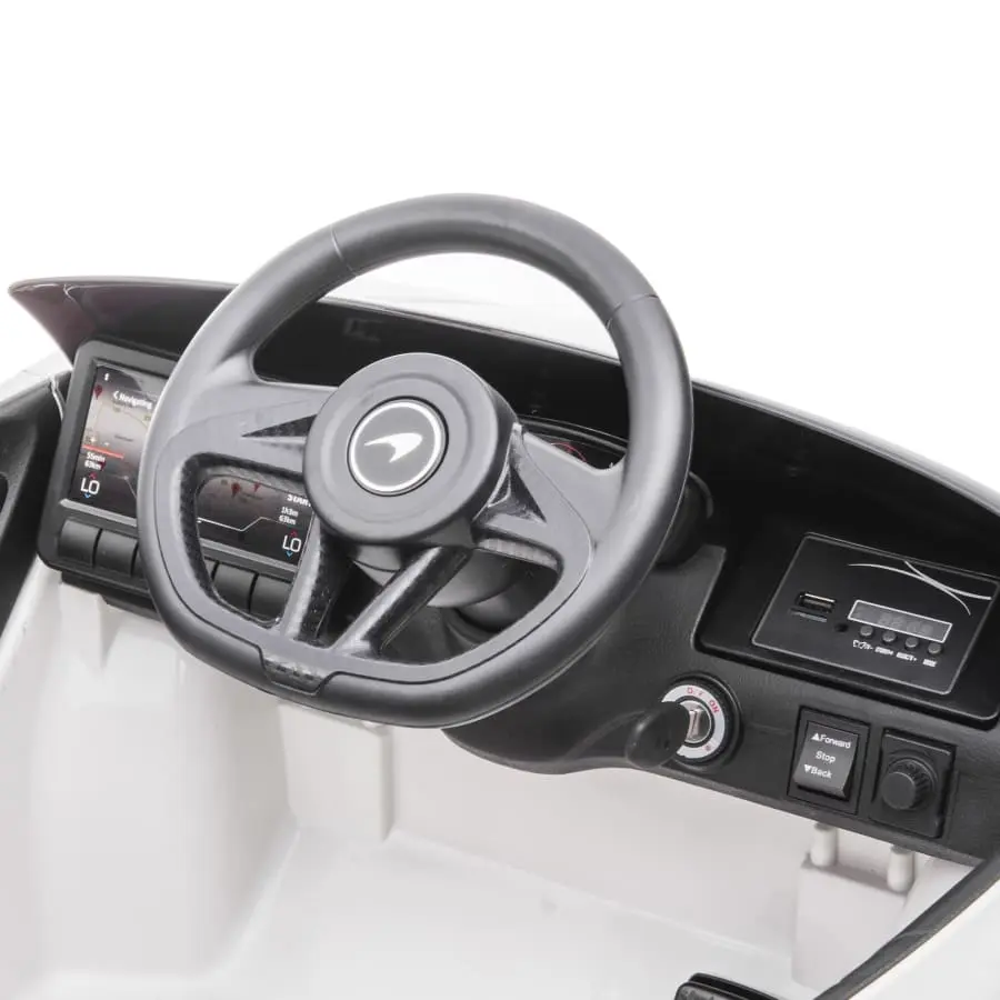 McLaren GT – drömbilen för alla pojkar eller tjejer. En sportbil med licens från McLaren som kan styras både manuellt och via den medföljande fjärrkontrollen. Bilen är vit och väldigt fin. Den är utrustad med halkfria, stötdämpande EVA-däck för att minska buller och öka säkerheten, och däcken har till och med fantastiska McLaren-fälgar.