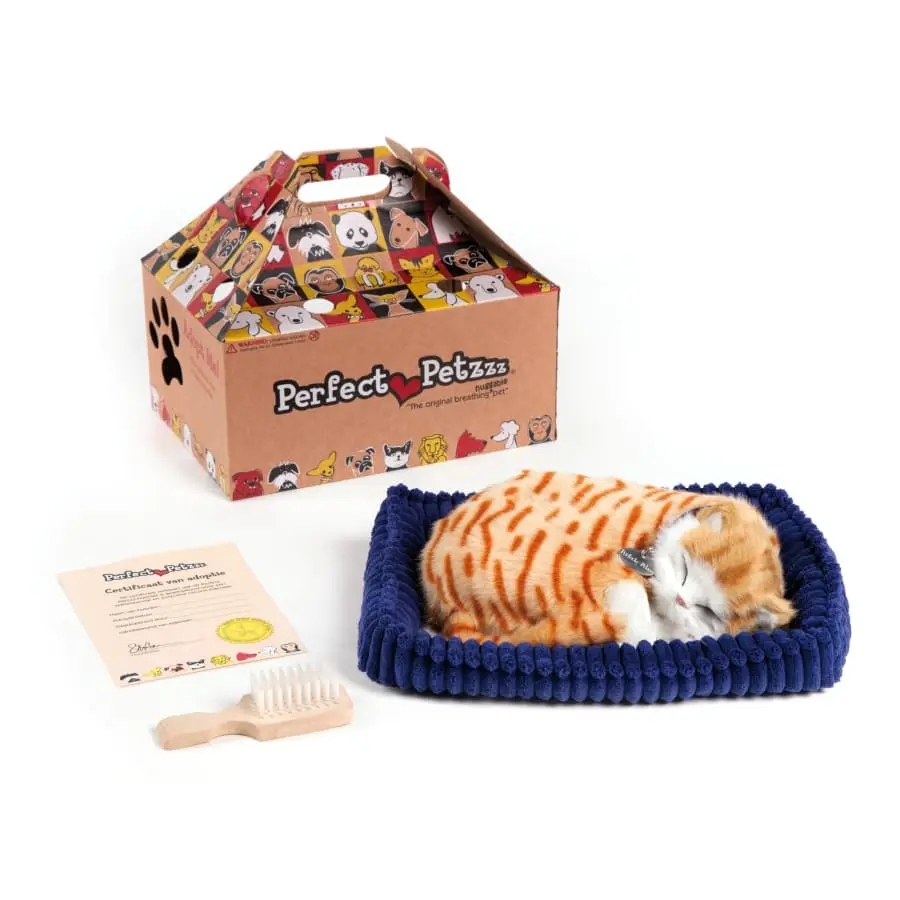 Perfect Petzzz pets are like living puppies & cats that breathe! They need attention, care and love. For this reason, the package comes with accessories such as a brush, bed and collar. The package also works as a carrying case. And, of course, it also comes with an adoption certificate!
