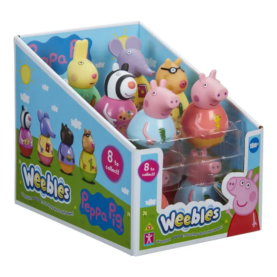 Your favourite Peppa Pig characters now come in wobbily Weebles form! There are 8 figures to collect. Give it a little push and watch it wobble, but not fall down! Ages 18 months+.