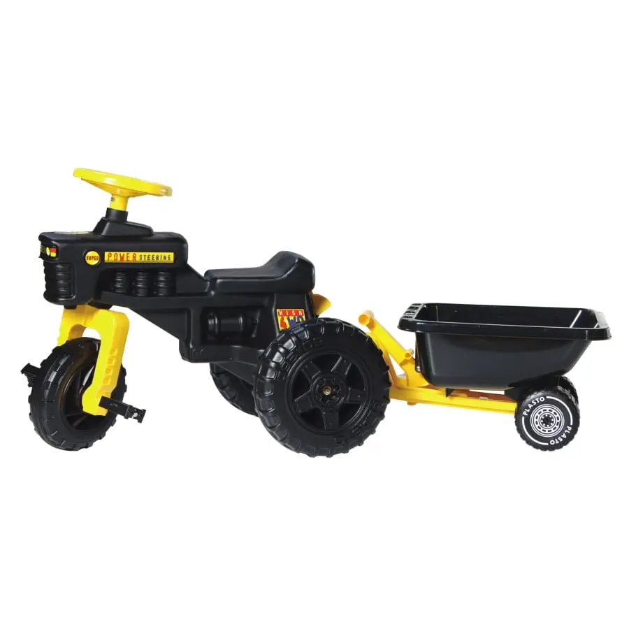 The Plasto trail tractor with a trailer is a safe choice for a child’s first trail toy.