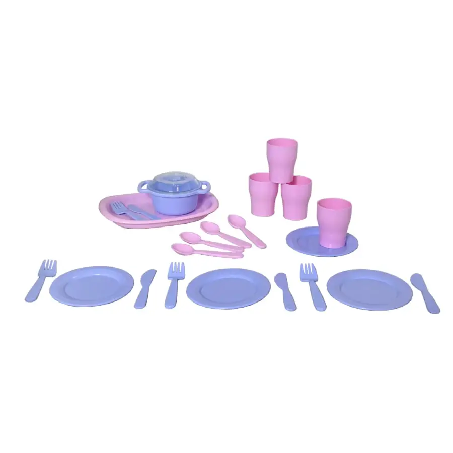 - Plasto’s high-quality and durable tableware for four. Contains 23 parts.