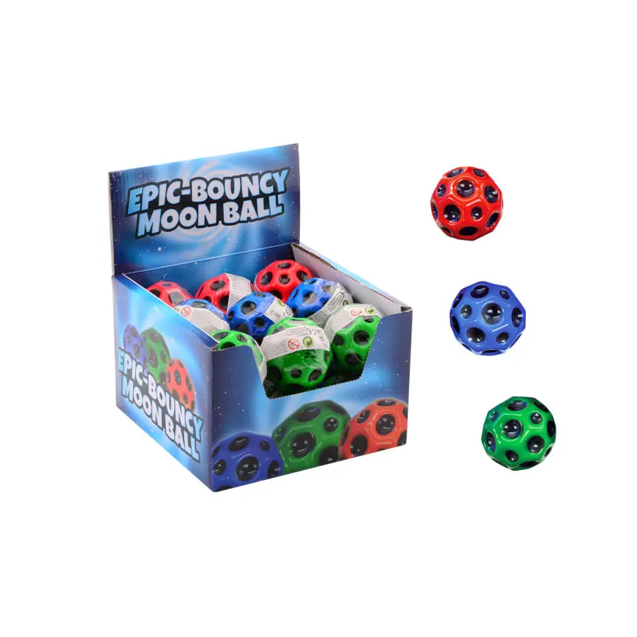 Epic bouncy ball that bounces easily to heights! Throw and catch, or make it bounce. The ball feels pleasant in the hand and is slightly soft. Three different colors in the assortment. Sold separately. Diameter 7 cm. Age recommendation 3+ years. (Note: Unfortunately, you cannot choose the color when ordering from the online store. We deliver a random color depending on the availability. The package contains one product.)