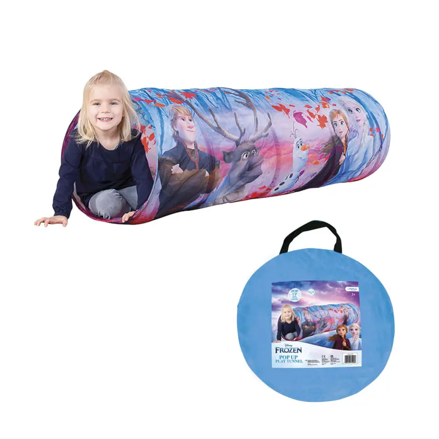A play tunnel is a great place to hide and play. The tunnel is illustrated with Frozen 2 movie characters. Size 150 x 45 cm. Easy to pack away to the included carry bag. 3+