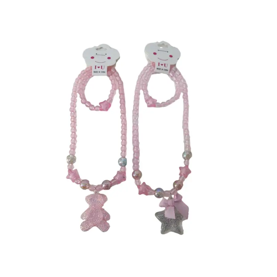Sparkling pearl jewelry, matching necklace with pendant and bracelet in the set. Assorted with two different pendants – a teddy bear or a star. Age recommendation 3+ years. (Note. Unfortunately, the model cannot be selected when ordering from the online store. We deliver a random model depending on the availability. The package contains one product.)