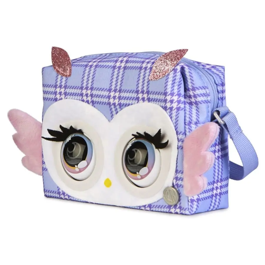 Discover Print Perfect Purse Pets with patterned fabrics. These fashionable and fabulous interactive Purse Pets (perfect girls’ gifts) are packed with purse-onality. They respond to your touch, really blink and have over 30 new exciting sounds and reactions. Hoot Couture Owl features lilac plaid fabric, glittery ears, plush wings, pop-art inspired eyes and an adjustable strap. When you’re out and on-the-go, your Hoot Couture Owl Purse Pet will blink and make sassy sounds as she interacts with you. She loves to cuddle. Hug her tight and you’ll hear the sweetest snuggling sounds. Then, check out the stylish insignia on the front of your purple purse – it’s a secret button that unlocks more ways to play. In Magic Mode, you can play games and strike a pose. Want to know how much your Purse Pet likes your outfit? Try the style meter with BFF Realness Mode. Ask her what she thinks, touch her forehead and she’ll respond. The louder the applause, the more she loves it. In Runway Ready Remix, your Purse Pet will play cool fashion show-inspired music while you strut your stuff and rock your runway look. Play the role of DJ and remix the beats by tapping her forehead – she even makes record scratch sounds. Dance to the music and strike a pose for the cameras when the music stops in Fashion Freeze. It’s so much fun. Plus, with the Bamboo Boo Koala Purse Pet (sold separately), these trendy toys can sing a secret song together when you time it just right. With Purse Pets, friendship meets fashion. Take your super cute purse with you everywhere you go. Measuring approximately 10.8cm (H) x 15.9cm (W) x 6.4cm (D), each Print Perfect Purse Pet fits all your essentials. Includes 3 AAA Duracell batteries. Purse Pets interactive toys for kids are great birthday gifts, Christmas gifts, stocking fillers or gifts for any occasion. Collect them all (each sold separately) and express your style. Bring your look to life with the Print Perfect Hoot Couture Owl Purse Pet.