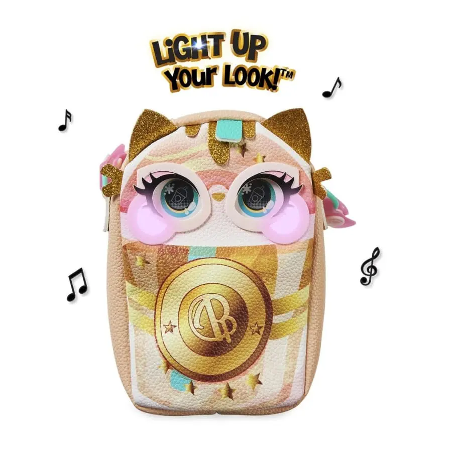 Serve up the sweetest looks with kawaii-inspired Treat Yo Self Purse Pets. These fashionable Purse Pets foodie mashups (perfect girls’ gifts) have expressive light up cheeks, over 25 exciting sounds and reactions and respond to your touch. Treat Yo Self Catpuchino features pebbled faux leather with printed graphics, gold glittery ears, pop art eyes, a pink jelly strap and a vertical crossbody shape. When you’re out and on-the-go, your Purse Pet’s cheeks change colour and she’ll make sweet sounds as she interacts with you. Catpuchino loves to cuddle. Pet her forehead to hear happy snuggle sounds and make her cheeks light up. If you hold her forehead and nose at the same time, she’ll even blow you a kiss. There are even more fun ways to play with your Catpuchino Treat Yo Self Purse Pet. In Magic Mode, you can play a game and dance to her music. Have her predict your mood with her Mood Meter. Touch her forehead for cute prediction sounds and her cheeks will change colour – orange for sassy, yellow for happy, green for lucky and more. In Rainbow Runway, your Purse Pet will play cool fashion-show inspired music and her cheeks will light up with rainbow colours. Strut your stuff and rock your runway look. It’s so much fun. With Purse Pets, friendship meets fashion. Measuring approximately 17.8cm (H) x 10.2cm (W) x 5.1cm (D), this super cute purse is the perfect size to take with you everywhere you go. Treat Yo Self Purse Pets do not blink and include 3 LR44 button cell batteries. For more ways to express your style, accessorise with the Pupsicle Treat Yo Self Purse Pet (sold separately). Purse Pets interactive toys for kids are great birthday gifts, Christmas gifts, stocking fillers or gifts for any occasion. Bring home the sweetest addition to the Purse Pets line: Treat Yo Self Catpuchino.