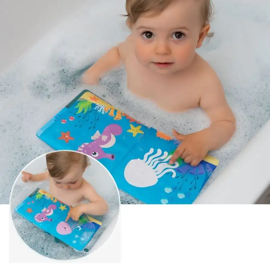 The pages of the book are soft and light so that the child can turn the pages himself. The pages don’t become slippery when wet, but if the book falls from the child’s hand, it doesn’t matter, because the floating book is easy to grab back.