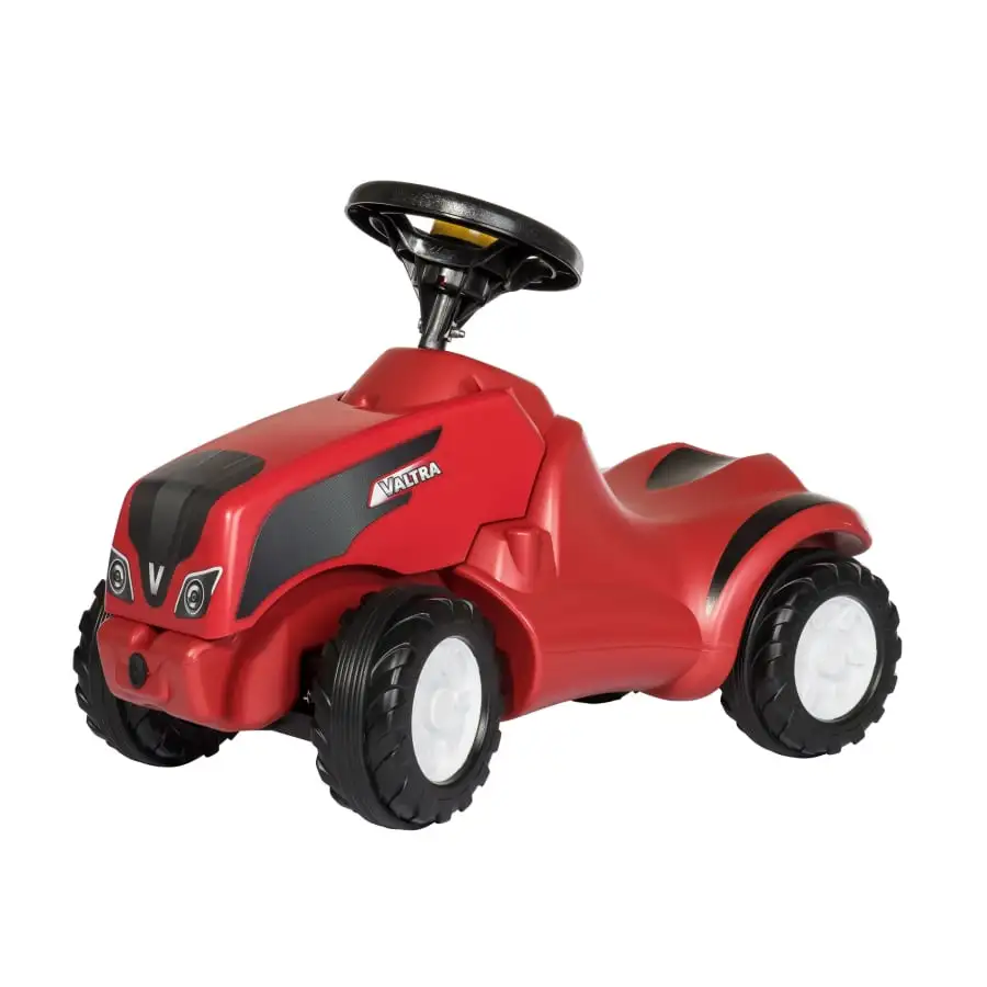 Rolly MiniTrack kick tractor for the little driver. The tractor has a steering wheel and the hood can be opened. The ergonomically designed tractor has recesses for the knees. The product has a stern hook.