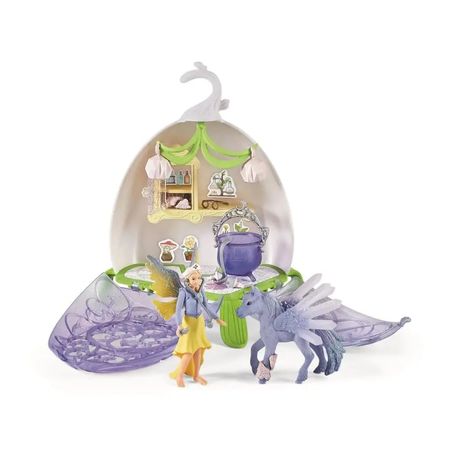 Schleich® bayalan® the new magical vet flower is the right place for anyone with ailments. Sera the fairy is the best vet in all of bayala who can help everyone. Sera is excellently equipped with a nurse’s headgear, stethoscope and other handy equipment. As a little helper, a sweet Pegasos foal acts, who is always by his side and diligently helps in everything he can.