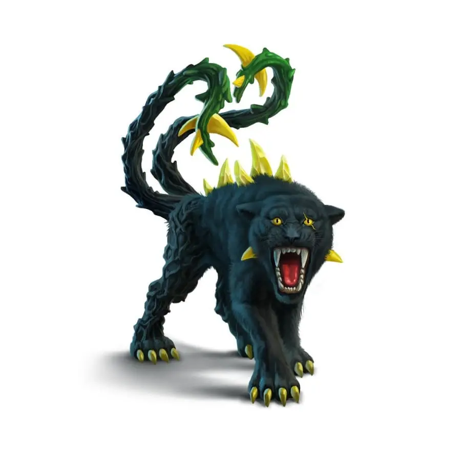 Precautionary! The shadow panther from Schleich® Eldrador® Creatures lurks in the jungle like a dark ghost. Thanks to its pitch-black fur, it is able to move unnoticed in the shadows and ambush its enemies there. If the intruder gets too close, it leaps out of hiding with its razor-sharp claws and pounces on the opponent. This is often followed by a breathtaking chase, easily won by the tenacious jungle dweller. The dangerous shadow panttei is especially proud of its two spiky liana tails: They help it keep its balance even during high jumps. In addition, it can use its strong tails as a double whip. The spikes on the ends of the tails and its muscular back are truly dangerous: They contain a paralyzing poison that instantly incapacitates enemies.
