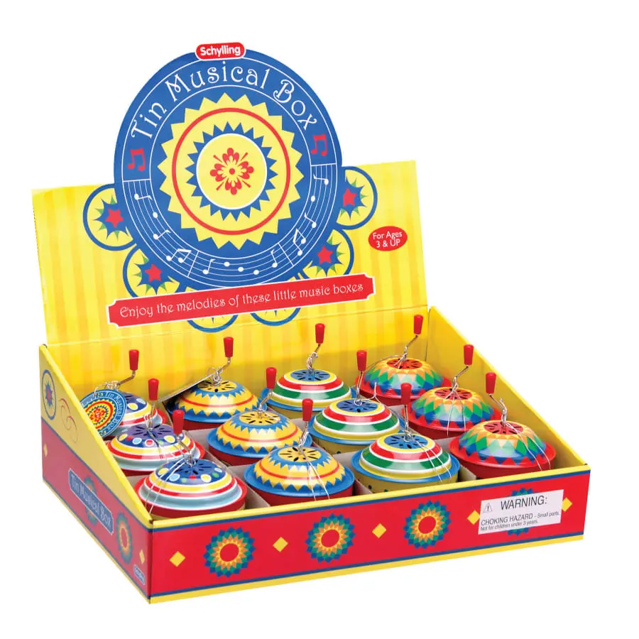 Turn the handle and listen to a tune with these fun tin music boxes! This is an old classic with a new twist. No batteries or electronic parts, just old-fashioned know-how and intelligent design. From 3 years.