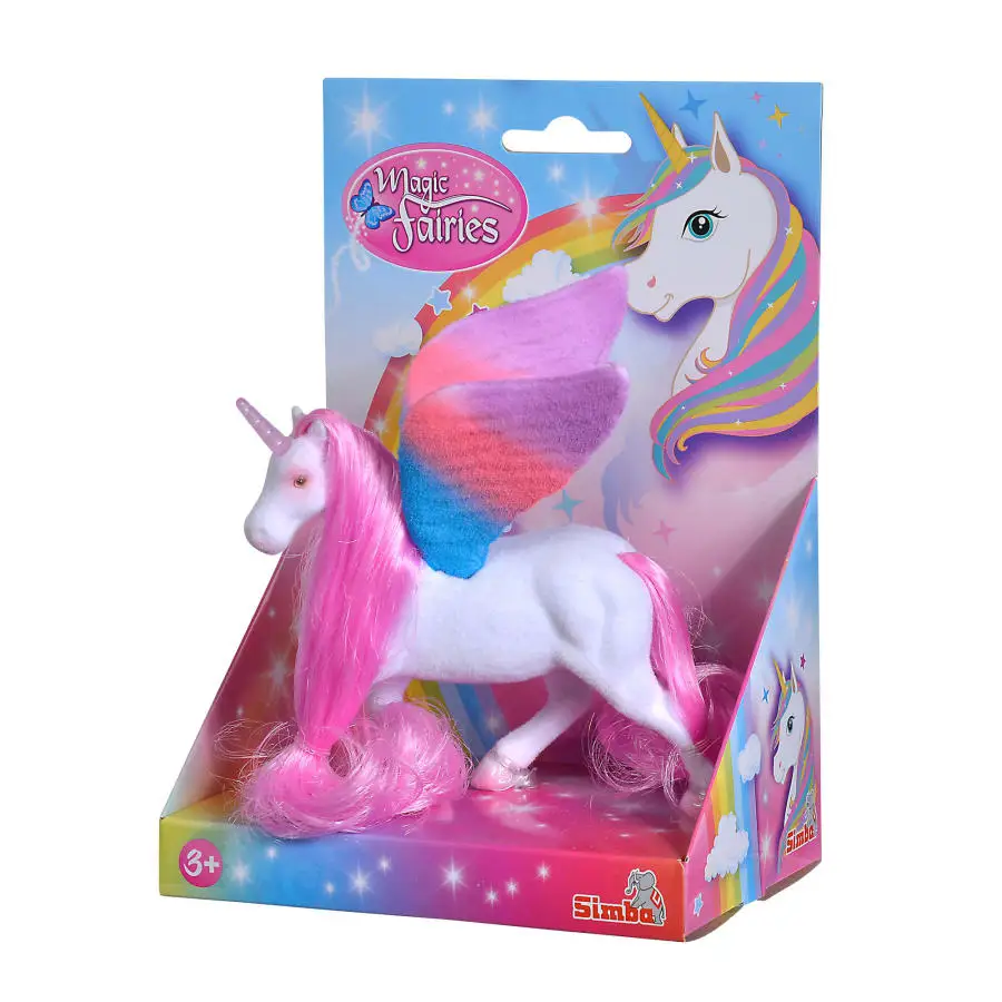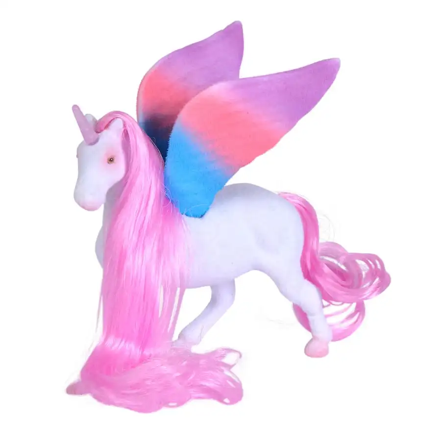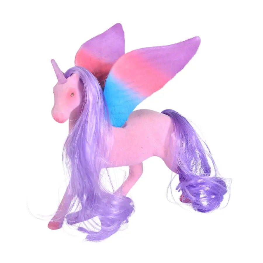 flocked unicorn with wings, white or pink, 11cm, TB, 3Y+